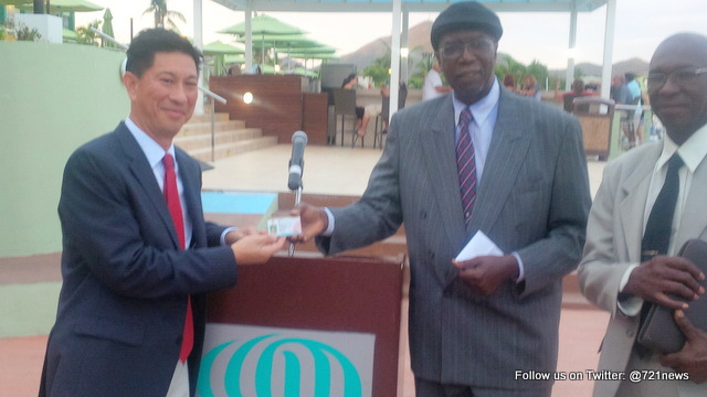 MAHO, Sint Maarten –– The St. Maarten Grassroot movement awarded politician and president of the Caribbean Hospitality and Tourism Association Emil Lee with its honorary ID card at the Sonesta Great bay resort yesterday. President of the movement Leopold James presented the card to Lee in front of family and friends.
