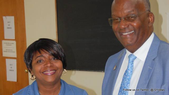 PHOTO CUTLINE: L to R: A. Blanchard, coordinator of the sewing program and Minister of Justice Hon. Dennis Richardson