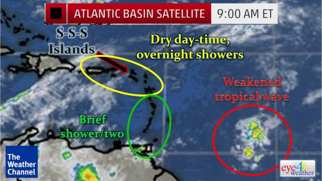 The weakened tropical wave that is approaching the Eastern Caribbean is still
