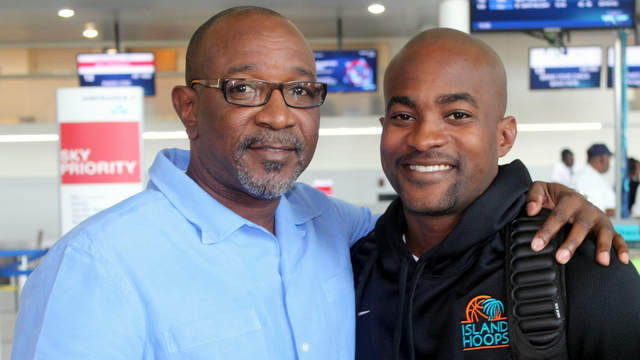 PHOTO CUTLINE: L to R: Minister Hon. Claret Connor and Island Hoops Founder and Head Coach Paul Bell