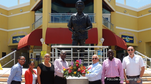 POINTE BLANCHE, Port St. Maarten – Port St. Maarten Management, members of the Supervisory Board, and staff, laid a wreath at the statue of Dr. A.C. Wathey on Friday, July 24, 2015 to mark his 89th birthday. The country’s port facilities are named after him – Dr. A.C. Wathey Cruise & Cargo Facility.