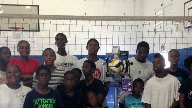 Photo caption: UVC summer camp participants 2015, with Skill Attack volleyball machine (center). (UVC photo)