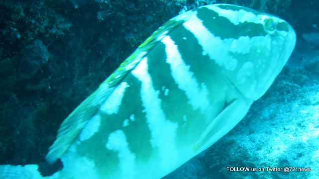 Philipsburg, Sint Maarten –– The Sint Maarten Nature Foundation during various research dives has noticed an increase in Nassau Grouper, a once critically endangered species and one considered almost extinct in Sint Maarten waters, in the Man of War Shoal Marine Protected Area. The Nassau Grouper (Epinephelus striatus) is a large fish that inhabits reef ecosystems. As is typical of groupers, it has a robust, elongated body, rounded fins and big lips. Its overall color is pale tan for fish found in shallow areas and pinkish red for fish found in deeper waters.