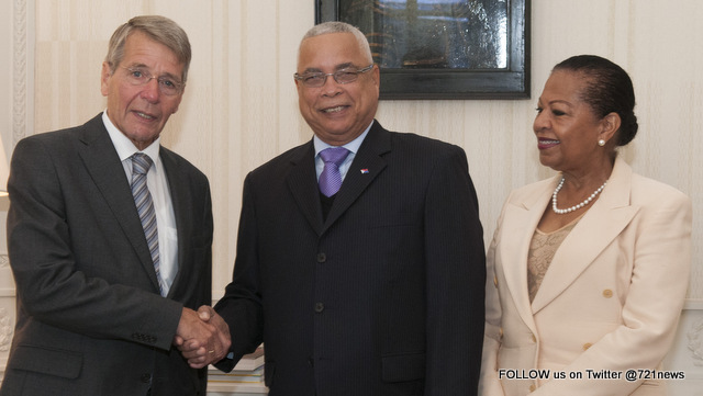 PHOTO CUTLINE: L to R: Vice-President of the Council of State for the Kingdom Piet-Hein Donner, Prime Minister Marcel Gumbs and Minister Plenipotentiary Josianne Fleming–Artsen. Photo by Nico van der Ven
