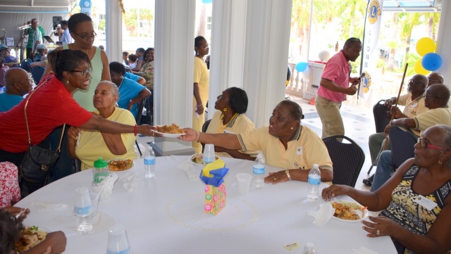 Photo Caption: A St.Maarten Lions Club member serves lunch to the seniors at the Lion Nelson vd Linde Senior Citizen Bash at Princess Port di Plaisance last Saturday.