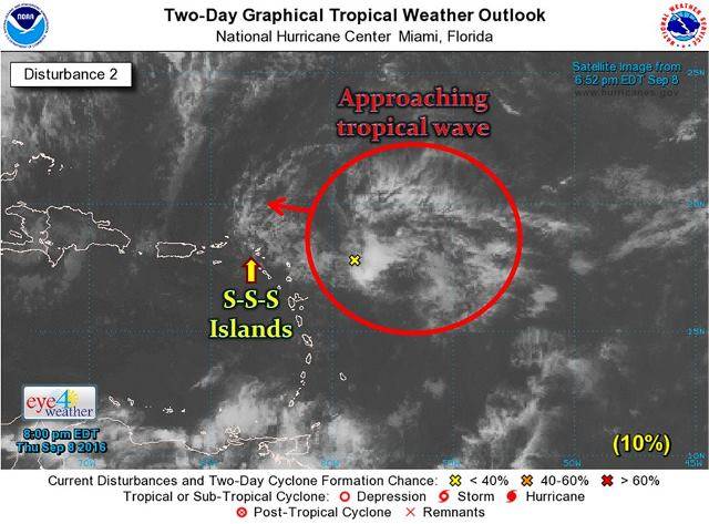 - A tropical wave is expected to pass over the local region overnight into tomorrow, bringing showers (some could be heavy) and possible thunder/lightning.