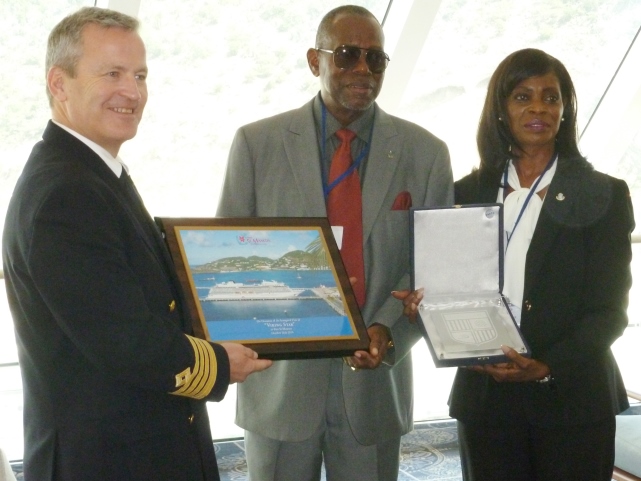 Hector Peters, Acting Human Resources Manager, on behalf of Port St. Maarten management, welcomed the Captain, his crew and passengers to the destination, and wished them a wonderful stay. Plaques were then exchanged as is customary.