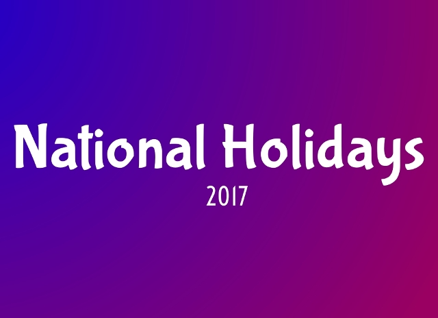 NATIONAL PUBLIC HOLIDAY SCHEDULE 2017