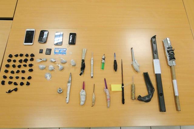 Unauthorized items such as: mobile phones, marihuana packets and make-shift weapons were found.