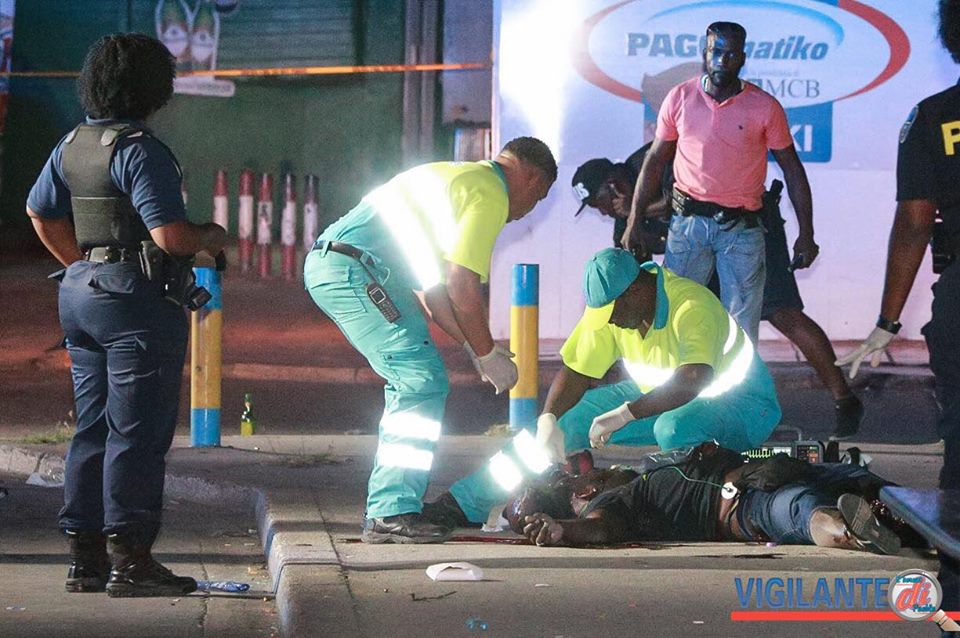 The police dispatch was notified of a shootout that took place in front of Berg Altana Mini Market where the public bus stop is located. Three ambulances arrived on the scene and paramedics started life-saving work on the victims.