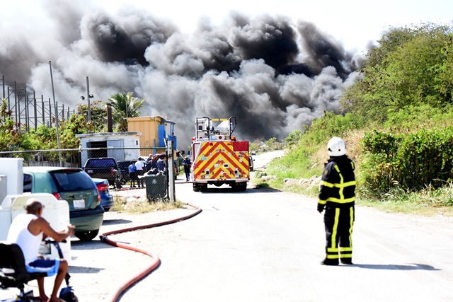 GREAT BAY, Sint Maarten (DCOMM) – The Fire Department, is advising persons living in the Philipsburg and surrounding areas downwind from the landfill fire, to close windows and doors, especially persons who have a respiratory challenge, and for persons who suffer from asthma, shortness of breath, or any other respiratory challenges.