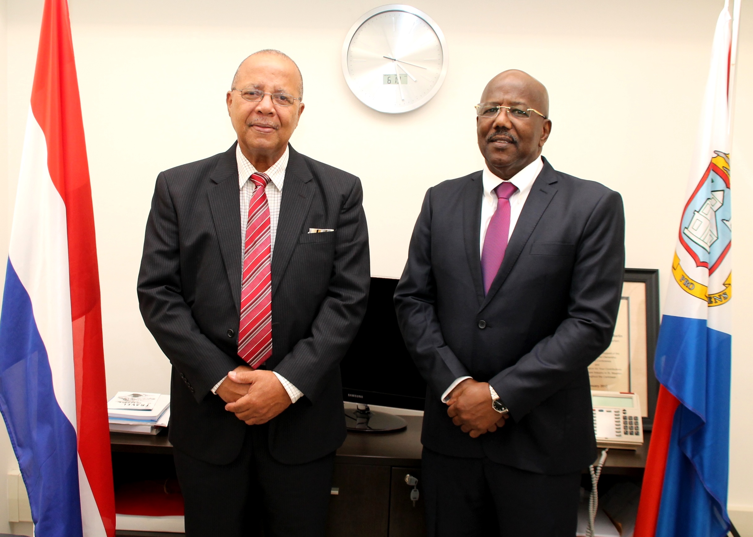PHILIPSBURG – Recently the newly appointed Honorary Consul of Guyana to Sint Maarten Mr. Cleveland Beresford, paid a courtesy visit to Prime Minister the Honorable William Marlin.