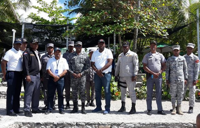 En la foto: De Izquierda a derecha se destacan : El Sargento Valdéz del CESTUR, Roberto Jiménez, Enc. Provincial del Ministerio de Turismo, La Romana, el Coronel Gómez, Encargado de seguridad del área y Eduardo Kery, Director(síndico) de la Junta Distrital de Caleta, La Romana.