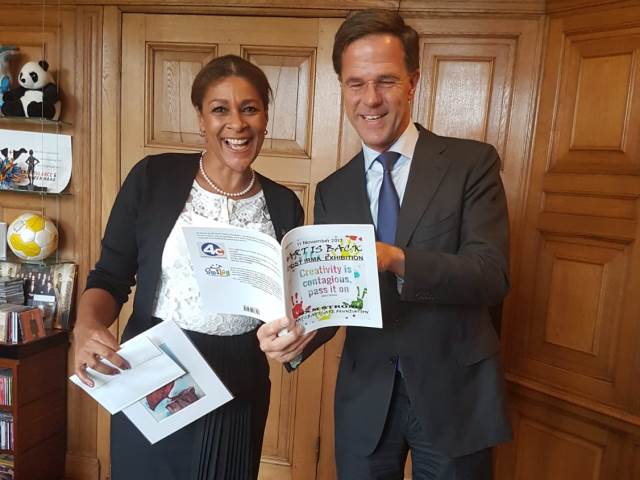 In this regard, Wuite emphasizes possibilities on the stimulation and enhancing of creative industries on the island. To strengthen this point, the Minister presented works of art produced by local artists Ruby Bute and Tess Verhey, as a token of appreciation to Prime Minister Mark Rutte.