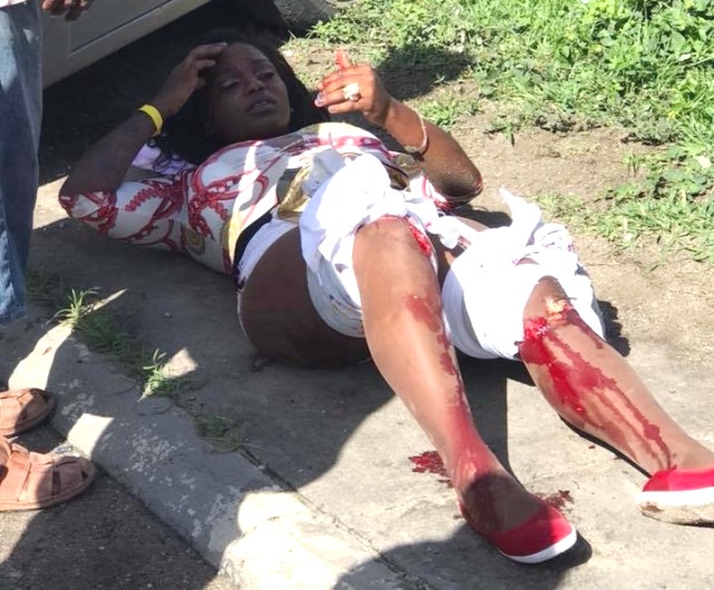 Ms Gumbs on the ground after the accident. Photo credit to Facebook File.