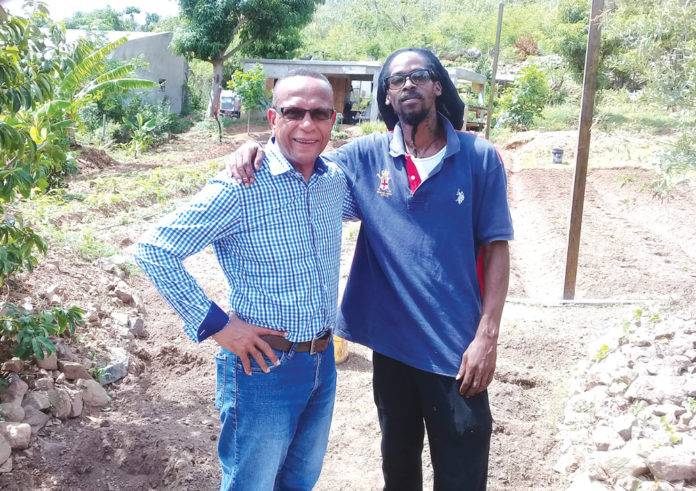 PHOTO: Minister of ECYS Mr Wycliffe Smith and Mr Denicio Wyatte at the SXM Agricultural Research and Development Center – Photo by Spaceless Gardens