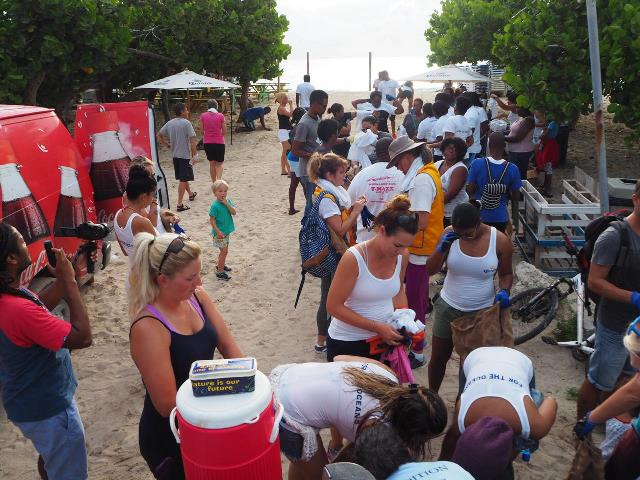 SIMPSON BAY, Sint Maarten — The Nature Foundation St Maarten partnered with Corona to clean up Mullet Bay Beach for International Coastal Clean-up day. About 100 volunteers showed up last Saturday evening to collect a record amount of 1280 pounds of trash! The Trash Tracker method developed by Ocean Cleanup Organization 4ocean has been used to weigh all the collected trash. Corona thanked all participants with a cold beer, prices and goodies were won by the largest trash collectors; the French ladies group ‘Police’, family ‘Sweetman’ and ‘JCI St. Maarten’.