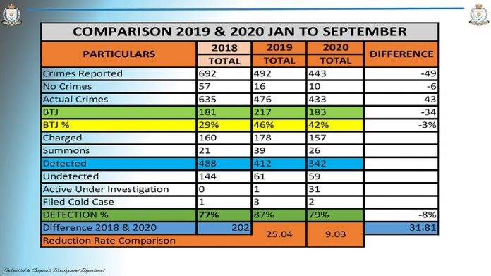ANGUILLA — The Corporate Development Department of the Royal Anguilla Police Force has release the crime statistics for the third quarter of 2020 (Jan – Sept). The release has also showed a comparison of its crime figures for the same period in 2018 and 2019 respectively.