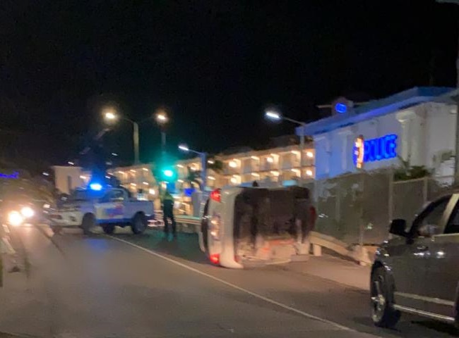 SIMPSON BAY, Sint Maarten — About 09:15 on Wednesday evening of august 4th 2021, police Central Dispatch received several reports of a car that rolled over on welfare road near the Simpson Bay Police Station.