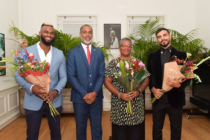 During the reception, four Sint Maarteners were recognized for their outstanding contributions. In the field of Sports, Denzel Richardson and Dudley Leonora, in the field of research Ms. Lysanne Charles was recognized and Lisandro Suriel in the field of digital arts and photography.