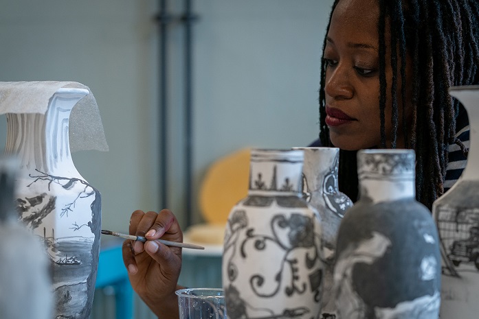 A base di un kolekshon di vas di porcelana ku Damberg a traha na Friesland, Hulanda aña pasá, e ke hiba e pida historia aki dilanti. E ta dedika e eksposishon na defuntu Pacheco Domacassé ku a yudé hopi ku e tema.