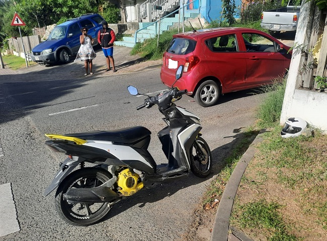 A scooter rider was struck by a and Red Chevrolet Spark on L.B. Scott Road in the second unrelated accident on September 27, 2022, around 7:00am.