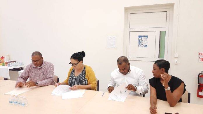 Chairlady and representative of NIPA’s Supervisory Board of Directors, drs. Peggy-Ann Dros-Richardson and OCW-CG department head, Mr. Reynolds (Nolly) Oleana, both signed the agreement, making this learning opportunity a reality for students interested in the field. Also present at the signing ceremony were Ms. Mirella Thijm of OCW-CG, ing. Sergio D. Blomont of NIPA and members of NIPA’s Supervisory Board of Directors.