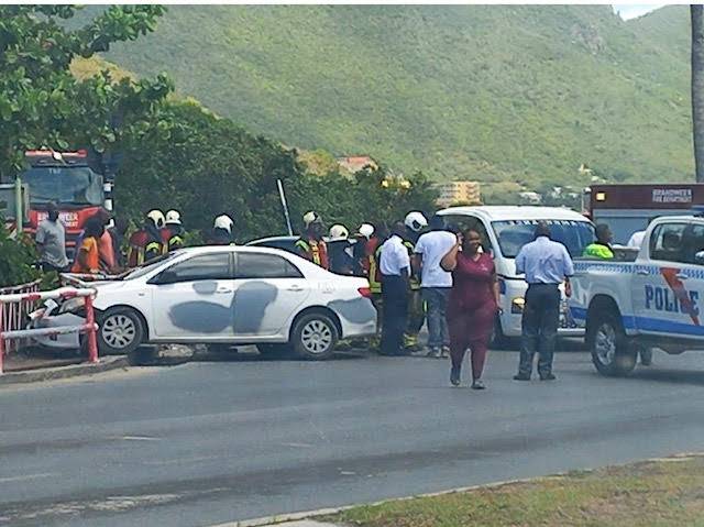 PHILIPSBURG, Sint Maarten — The St. Maarten Police Force traffic department is busy conducting an investigating, into accident involving two vehicles which occurred in the intersection near the Prince Bernard bridge during morning hour, today Monday July 24th, 2023.