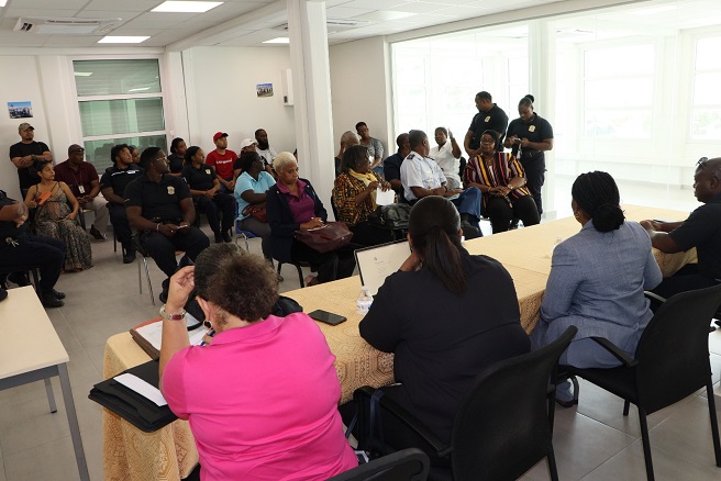 On the topic of uniforms, the Acting Head of Customs Mr. Franklin Bernadina informed that budget constraints had impacted uniform purchases. However, efforts were underway to solicit quotations from different suppliers, adhering to government policies for the purchases of goods. Minister Richardson also acknowledged the staff’s preference for the dark blue uniform shirt with cargo pants which is currently not recognized within their legal structure.