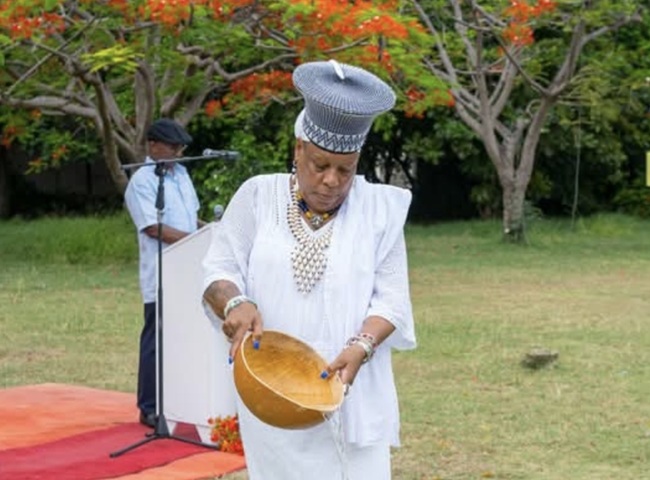 President and Founder of VOICES Foundation Ms. Nkosazana Illis Honoring our Ancestors through Libation