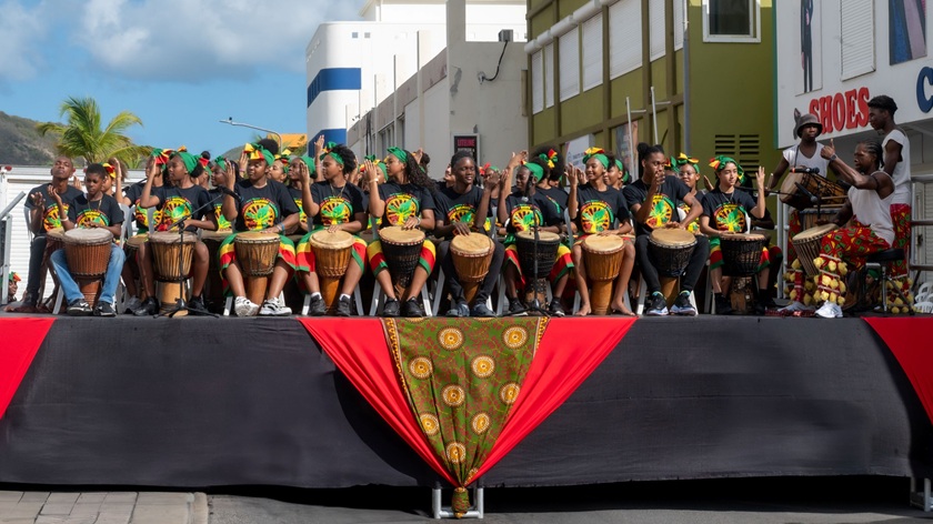 Drummers at the Emancipation Day celebration with Art Saves Lives Foundation on July 1, 2025, in Philipsburg, St. Maarten – Photo: Edgardo Lynch