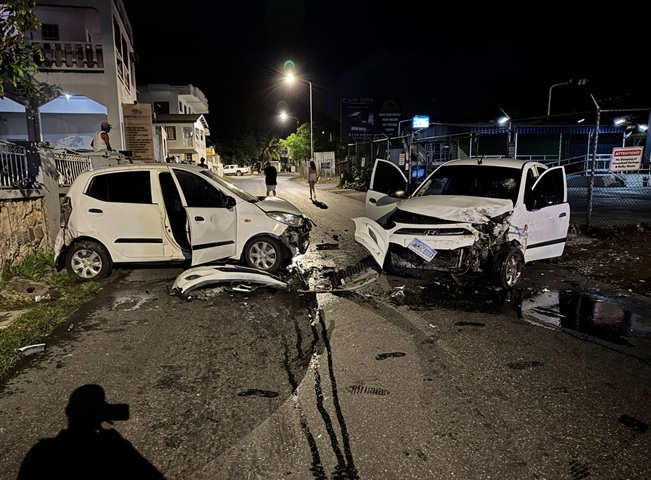 PHILIPSBURG, Sint Maarten (KPSM) – The Sint Maarten Police Force (KPSM) responded to a head-on collision involving two vehicles on Monday, July 14, 2025, at approximately 03:30 AM on Sucker Garden Road.