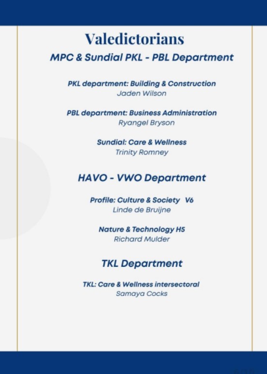 The following students have been recognized as our best-performing graduates and valedictorians for their outstanding academic achievements:
