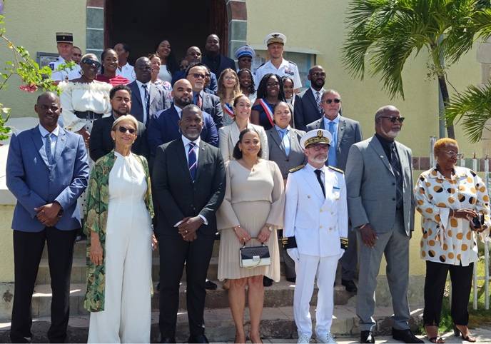 Following the service, the President of Parliament joined the Prefet Mr. Cyrille Le Vély and the President of the Collectivité of Saint-Martin, Mr. Louis Mussington, as well as other dignitaries from both sides of the island, to witness the parade of uniformed troupes and the wreath-laying ceremony at the Collectivité’s Memorial Monument.