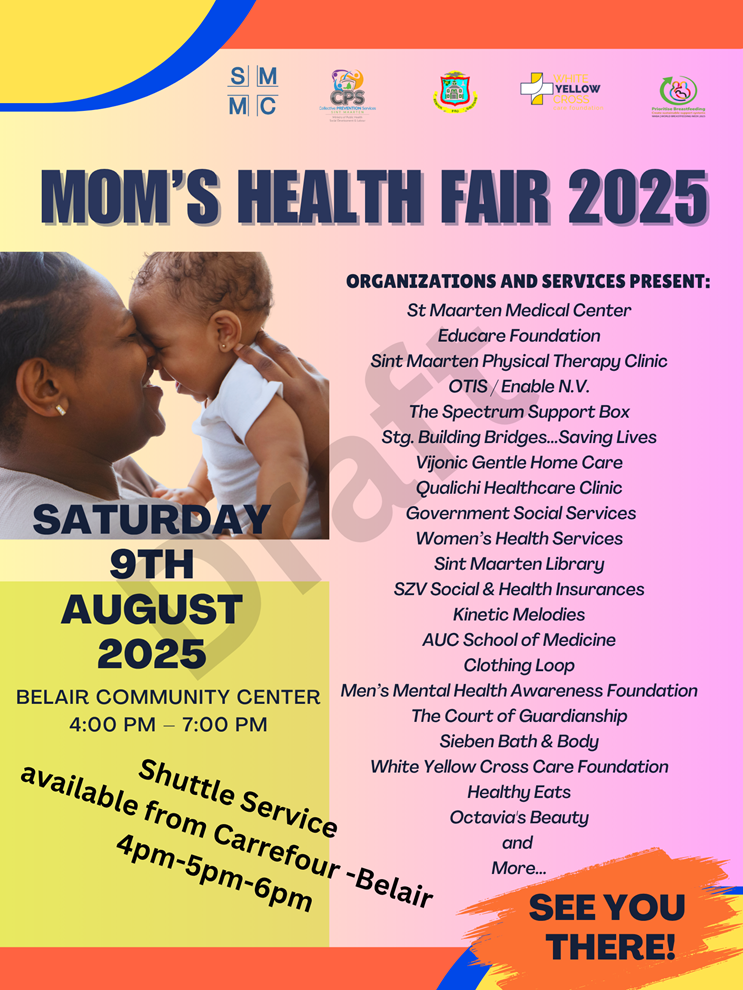 The Sint Maarten Library will also participate in the Mom’s Health Fair, highlighting a specially curated collection of books that promote literacy, family wellness, and the joy of shared reading. This presence reflects the Library’s commitment to supporting mothers and caregivers through access to enriching resources that nurture both mind and soul.