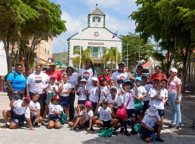 Philipsburg, St. Maarten — The much-anticipated Heritage Monument Walk – St. Maarten’s Little Explorers officially kicked off today with Group 4 students of Sister Borgia Elementary School taking the very first tour. Designed to bring history alive through a hands-on learning experience, the initiative combines fun, education, and cultural pride as children walk the very streets and sites that hold the stories of the island’s heritage.