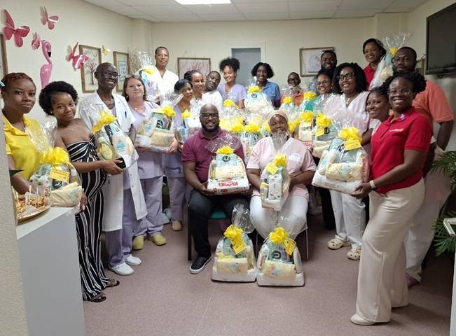 The first distribution took place at the St. Maarten Medical Center (Dutch side), followed by the  second at the Centre Hospitalier Louis-Constant Fleming (French side), with each hospital  receiving 50 baskets. The baskets, filled with essential items for newborns and mothers, were  donated to assist families in need as they begin their journey into parenthood.