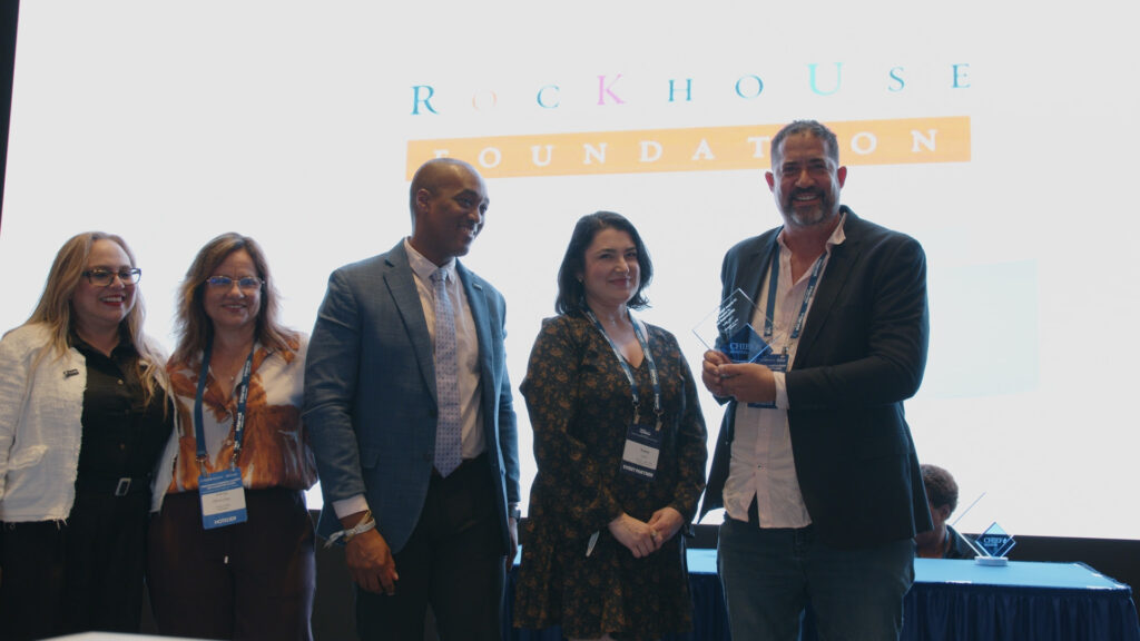 Social Responsibility (left to right): CHTA CEO Vanessa Ledesma, CHIEF Program Chair Patricia Affonso-Dass, CHTA President Sanovnik Destang, CHIEF Platinum Partner Kasey Lohn – Interval International and Adam Shepard accepting on behalf of Rockhouse Foundation