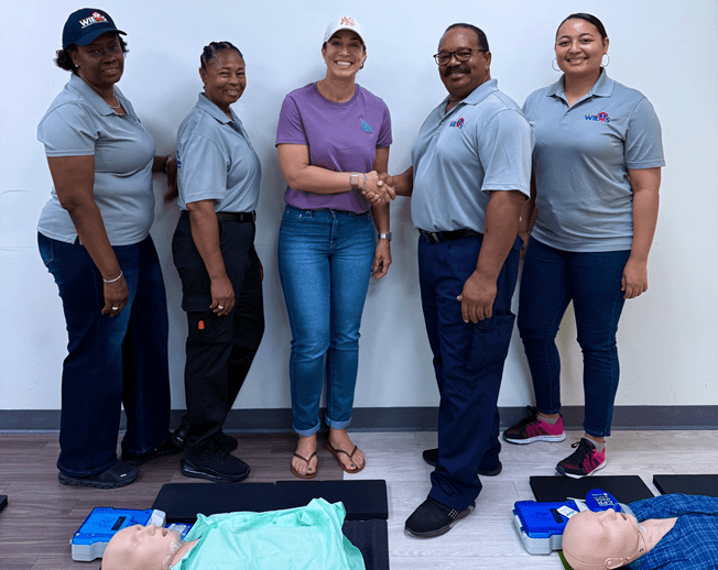 The training was facilitated by Windward Islands Emergency Medical Services (WIEMS) and AUC students and certified trainers, with participation from customs officers, the Secretary-General, cabinet staff, Immigration officers, and representatives from several justice departments.