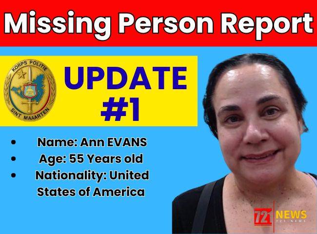 The Police Force of Sint Maarten (KPSM) continues its investigation into the missing person case involving Ms. Ann EVANS, a U.S. citizen.