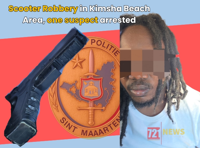 PHILIPSBURG, Sint Maarten — At approximately 3:00 PM today December 28th 2025 officers of the Sint Maarten Police Force (KPSM) responded to an armed robbery incident in the Kimsha Beach area. According to the information gathered at the location ,two suspects in a white vehicle, bearing a specific license plate, threatened the victim at gunpoint and violently stole his scooter.