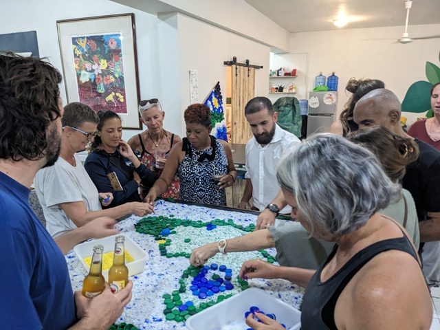 In closing, everyone joined in to collectively make a piece of art, portraying our collective effort in making a greener and cleaner Sint Maarten. The Perpetual Plastics team would like to thank all those that joined their ‘Trash Talk’, but also those that made the GoGo visit and recycled plastic sheet making possible, from various private donors, to Seaview Beach Hotel, and Stichting DOEN.
