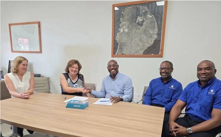 Also present at the signing were Jonathon Charles, Operations Manager and Austin Philips Front Office Manager, who are both mortgage Custodians of Kadaster St. Maarten, Mathilde Molendijk, Program Manager Caribbean Netherlands at Kadaster Netherlands, who oversees Kadaster operations on Sint Eustatius, Saba, and Bonaire and has extensive experience in international GIS education and land administration initiatives.