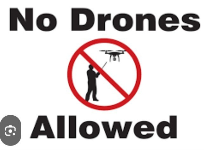 It added that the prohibition extends to drone launch, operation, or landing from both public and private property within the restricted zones.