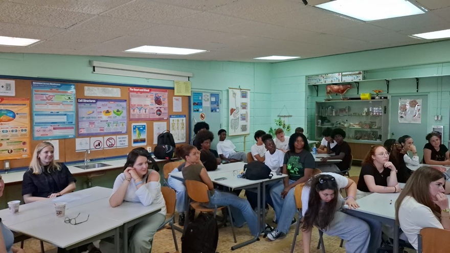 tour around the island, they visited four of our 37 beaches, and they participated in various excursions, such as a scavenger hunt in Philipsburg, a visit to Parotteville, the Amsterdam and St. Louis Forts and Perpetual Plastics. This allowed them to explore the history of the island, and the current state of affairs concerning recycling. These activities aligned with those that the group of St. Maarten students and teachers participated in, during their visit to Ahaus in December 2025, when they also stayed with host families, learned about the city’s history and visited their waste management center.