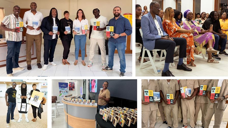 During the visit, Mr. Senghor spoke with two groups of incarcerated individuals and distributed copies of How to Be Free. Mr. Alesco E. Violenes, author of Surviving Point Blanche Prison, also shared his personal experiences with participants. In total, 100 books were donated to the detention center, ensuring that every incarcerated individual on the island will receive a copy as a resource for reflection, personal growth, and transformation.