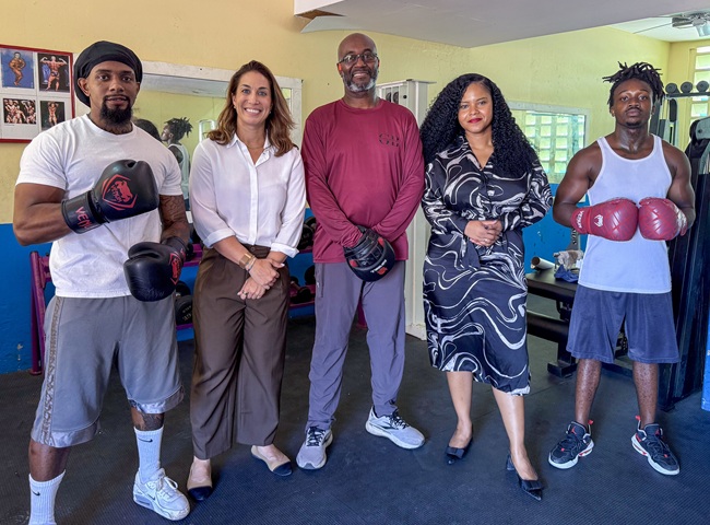 Philipsburg, Sint Maarten – Minister of Justice, Nathalie M. Tackling, together with Member of Parliament Ms.Sjamira Roseburg, officially accepted a donation of boxing equipment for inmates at the Point Blanche Prison. The donation, consisting of punching bags and boxing gloves, was personally delivered by Gramey Browne, in collaboration with AMA Jewelers and Pineapple Pete.