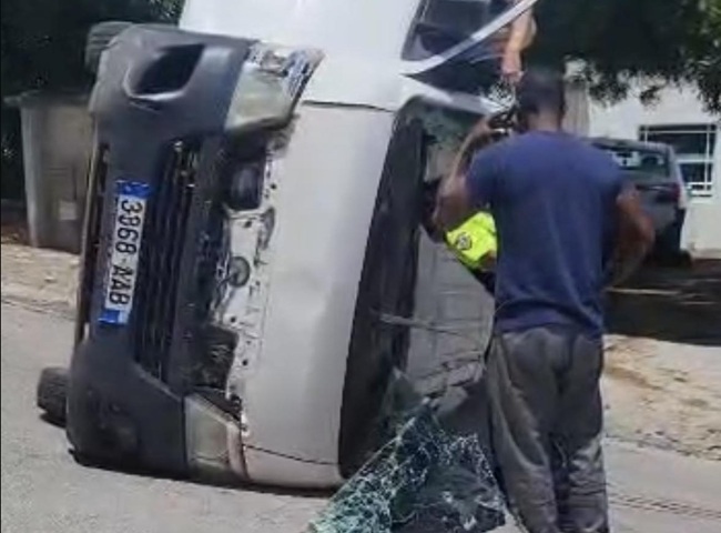 At approximately 1:00 PM, Central Dispatch received several emergency calls reporting a major accident at the location. Police patrols were immediately dispatched and, upon arrival, encountered a white minivan lying on its side with three occupants trapped inside the vehicle.